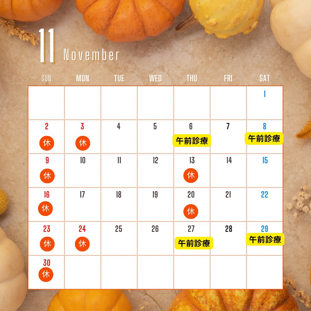 11月診療日についてお知らせいたします。